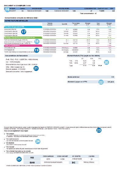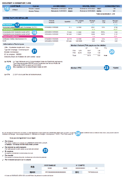 18Détail de la consommation facturée (période, volumes et prix unitaires).