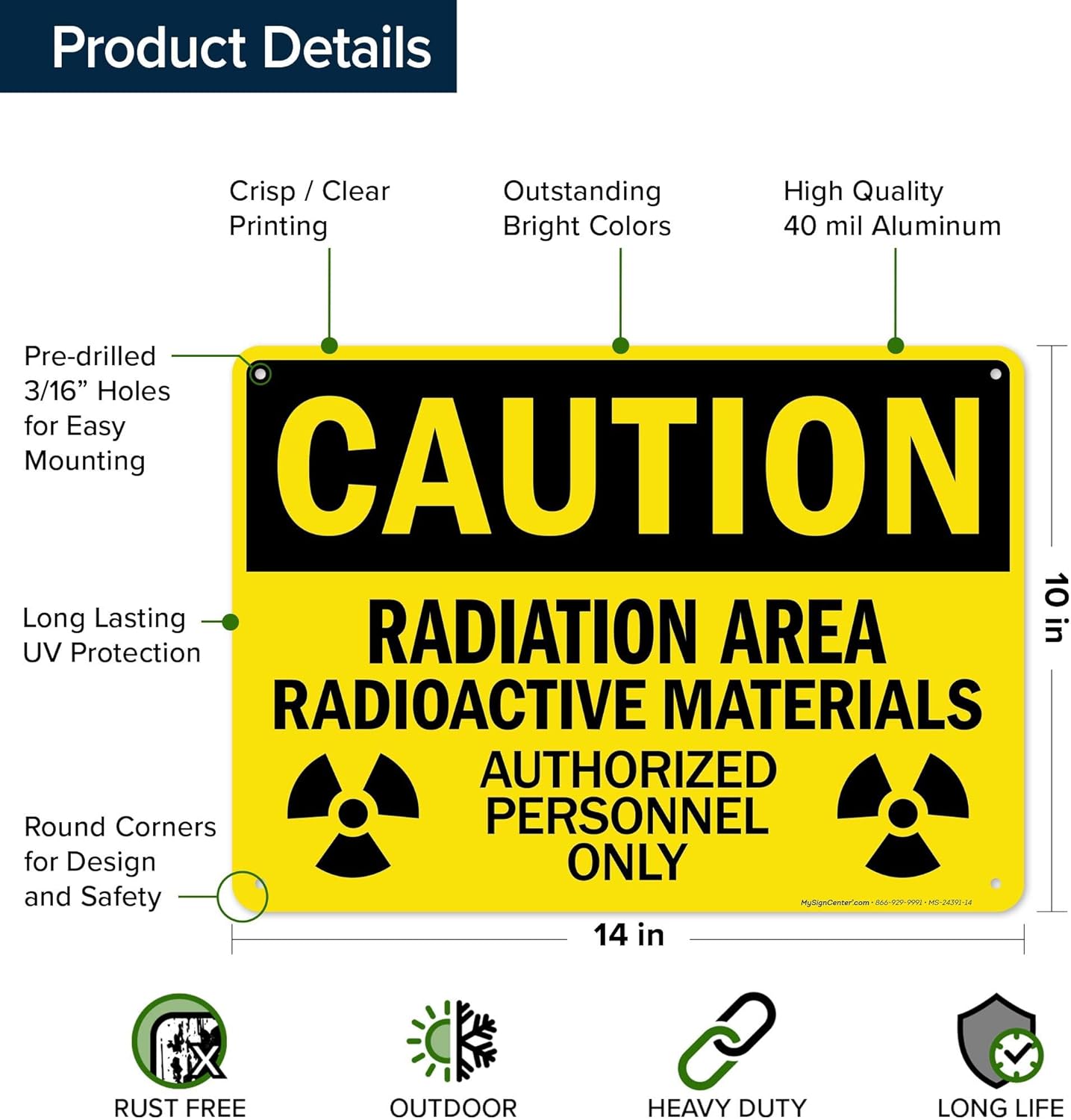 Caution Radiation Area Radioactive Materials Authorized Personnel Only Sign, 18x24 Inches, 55 mil thick HDPS (high density polystyrene), Made in USA by My Sign Center