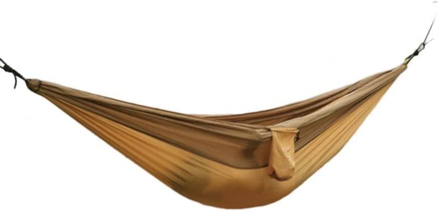 This hanging hammock for camping is easy to set up with safety ropes and carabiners.You can send it to your friend who is an outdoor enthusiast.Even just enjoy lounging in your backyard or patio this hanging hammock!Nylon rope with strong bearing capacity is safe to use.Get the most comfortable sleep in a tent.Material: FabricLoad Bearing Capacity: 200kgSize Details:L: 270cm/106.3", W: 140cm/55.12"(Approx.)Package Includes:1 x Hammock2 x Safety Ropes2 x CarabinersPackage Contents: 1 x hammock (excluding other display items)Please allow a difference of 1-2CM due to manual measurement.Depending the monitor and the light, the picture may be slightly different in color.Easy Setsup & Use: every hammock comes with a construction, portable hammock can be set up in everywhere indoor and outdoor in 1-6 min. And you can just lay down enjoy the leisure time in hammock after you hanged the hammock.