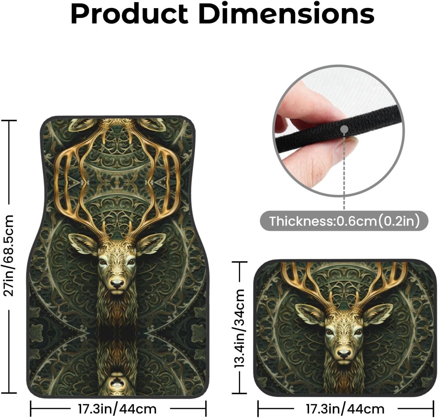 Add a touch of elegance to your car. Our Natural Light Deer Head Natural Light Deer Head printed car mats are light-resistant and stay colorful even in the hot sun. They are tightly woven, soft and firm to the touch, easy to clean, and can be easily rinsed to remove stains and keep your car clean. The drop-molding process on the bottom not only prevents dust from entering, but also simplifies the installation process. The non-slip design ensures stability in any driving situation, ensuring your safe driving. Suitable for a variety of models, whether it is a car, truck or van, this mat can perfectly blend with your interior style.
