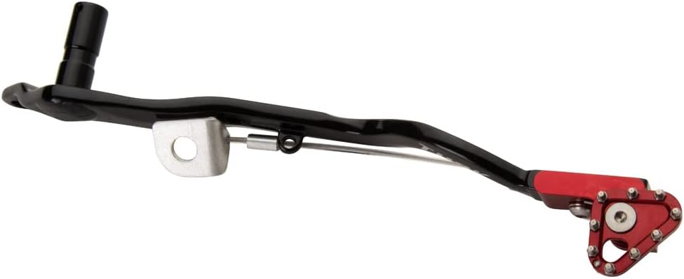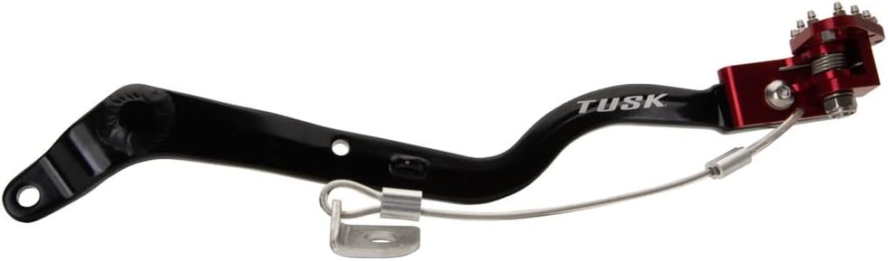 The Tusk aluminum brake pedal uses an extremely tough forged aluminum arm with a CNC machined toe tip to make this brake pedal one of the strongest you can buy for your motorcycle. The CNC machined tip is spring-loaded and rotates to prevent damage from crashes and impacts. The CNC tip also features stainless steel cleats for maximum traction; it is also replaceable in a variety of colors. The Tusk brake pedal also includes an adjustable length brake saver cable and mounting bracket to help prevent damage from brush, rocks, etc.